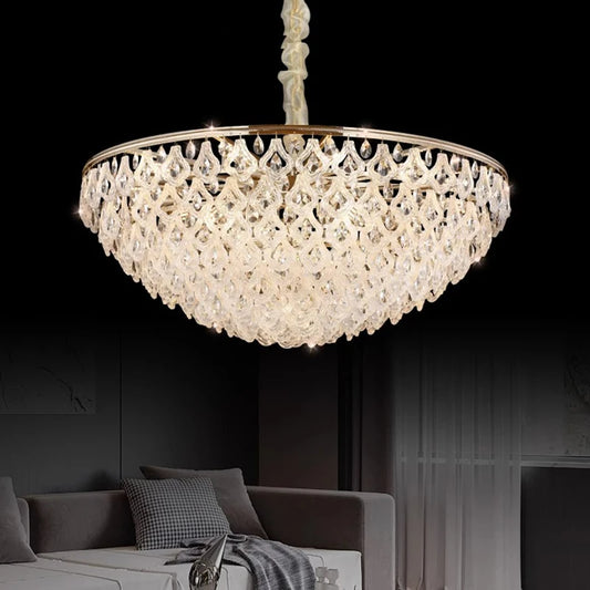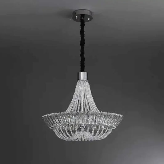 Lustre Moderne Empire en Cristal Doré Ce lustre moderne de style empire incarne l'élégance et la sophistication, apportant une touche raffinée à tout intérieur contemporain. Sa conception soignée, alliant une structure métallique dorée brillante à des cristaux K9 d'exception, crée une ambiance lumineuse chaleureuse et captivante. Parfaitement adapté pour sublimer...