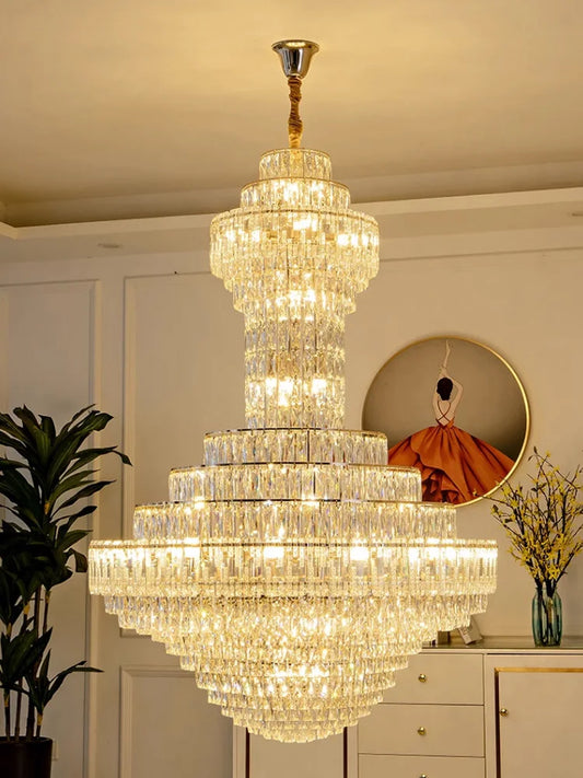 lustres en cristal de luxe maison Villa Duplex grenier salon éclairage Loft décoration intérieur lampes suspendues luminaires Découvrez l'élégance intemporelle et la sophistication raffinée de ce lustre en cristal de luxe, conçu pour sublimer tout espace intérieur. Son design moderne allie avec finesse la robustesse du fer à la pureté...
