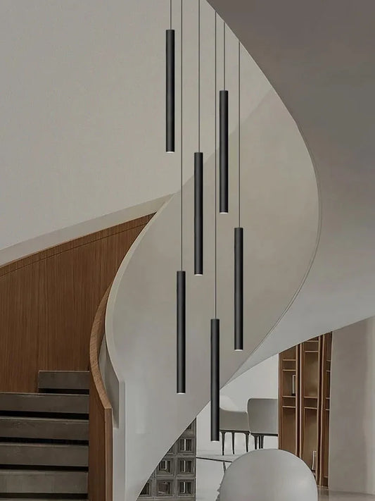 Longue lampe à suspension LED lampe de salon moderne suspendue villa escalier suspension projecteur éclairage intérieur lustre tubulaire Cette lampe à suspension LED incarne l’alliance parfaite entre design contemporain et fonctionnalité d’éclairage haut de gamme. Conçue pour sublimer vos espaces intérieurs, elle diffuse une lumière chaleureuse et modulable, créant une...