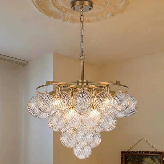Tiered Bubble Chandelier Ce lustre à bulles à plusieurs niveaux incarne une alliance parfaite entre design contemporain et élégance intemporelle, apportant une ambiance raffinée et chaleureuse à tout espace intérieur. Conçu pour sublimer votre décoration, il diffuse une lumière douce et multidirectionnelle grâce à ses globes en verre texturé, créant...