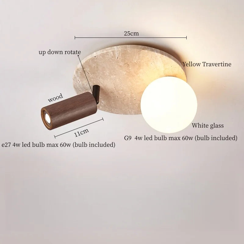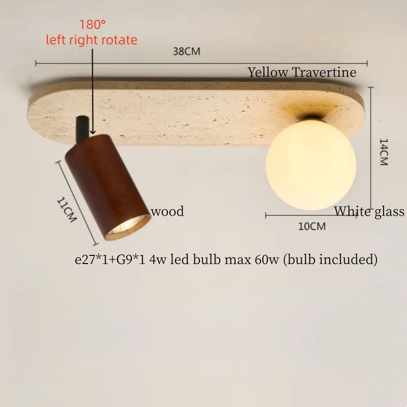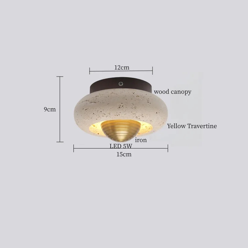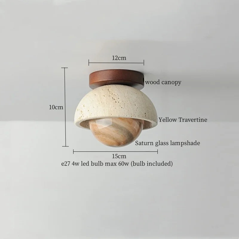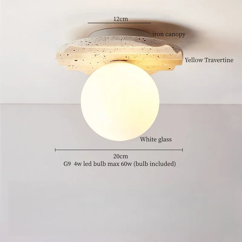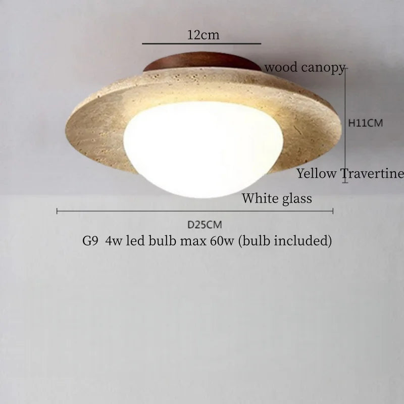 Ce plafonnier contemporain allie élégance et fonctionnalité, apportant une touche sophistiquée à tout espace intérieur. Son design épuré, mettant en valeur un abat-jour en travertin jaune et verre, crée une ambiance chaleureuse et accueillante, idéale pour sublimer la décoration de votre cuisine, salle à manger, chambre à coucher ou tout autre espace de vie. La combinaison harmonieuse des matériaux naturels et du style Wabi Sabi japonais confère à ce luminaire une esthétique raffinée et intemporelle.