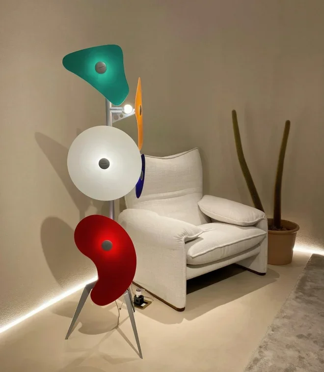 Les images ci-dessous illustrent les différentes perspectives et détails de ce lampadaire, mettant en avant son design unique et ses finitions soignées.