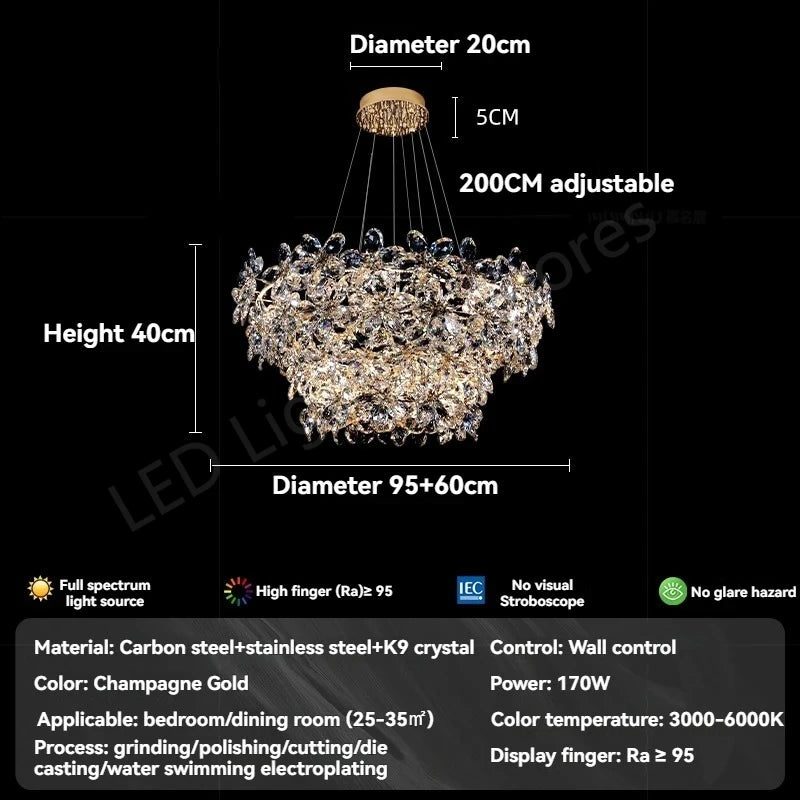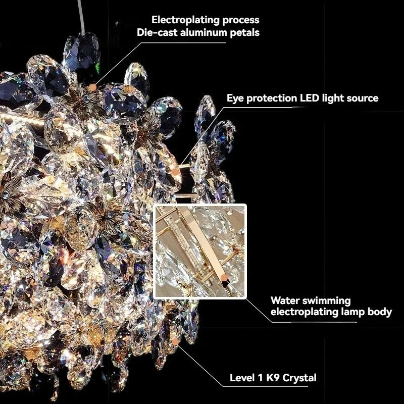 Ce lustre moderne en cristal allie un design raffiné et une fonctionnalité optimale pour sublimer vos espaces intérieurs. Sa structure en cuivre poli confère une élégance intemporelle tandis que les cristaux K9 taillés avec précision diffusent une lumière claire et captivante, créant une ambiance chaleureuse et sophistiquée. Idéal pour les salons, salles à manger, chambres ou halls d’hôtel, ce luminaire se distingue par son esthétique contemporaine et sa capacité à rehausser l’atmosphère de tout intérieur haut de gamme.