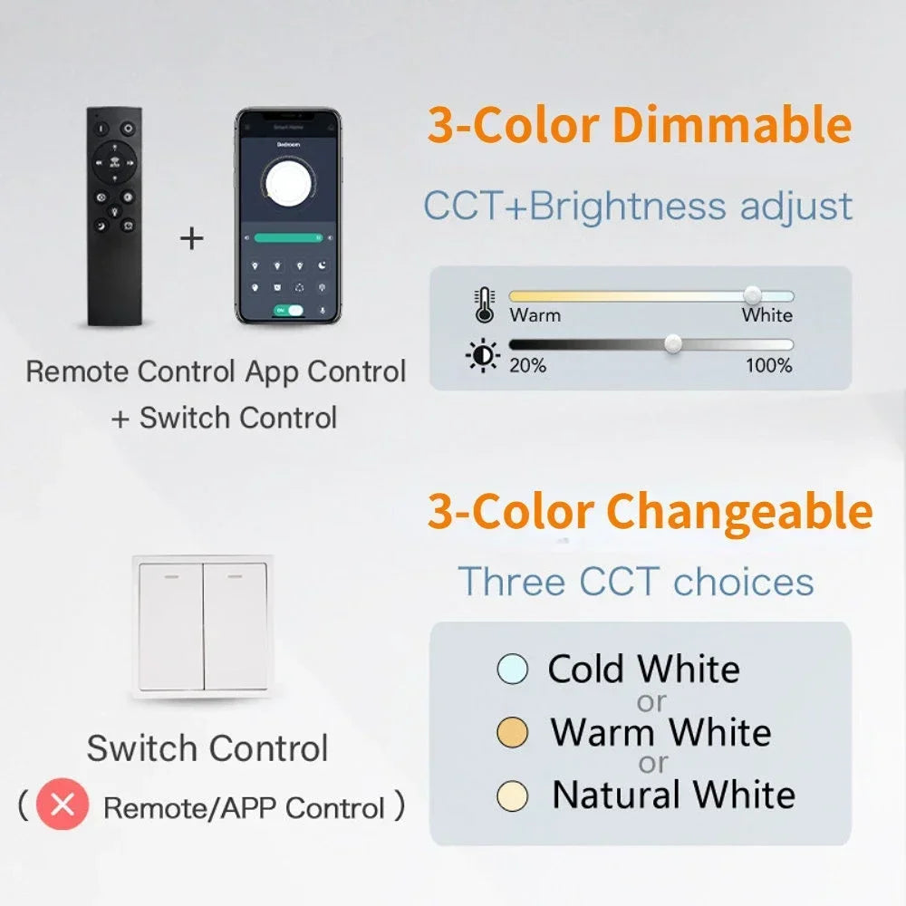 Changement de couleur de lumière : Cette suspension permet de basculer entre trois températures de couleur (lumière chaude, neutre et froide) via l’interrupteur mural. Lors de l’extinction et la remise en marche, la température de couleur change automatiquement, offrant une expérience lumineuse dynamique sans besoin de dispositifs supplémentaires.