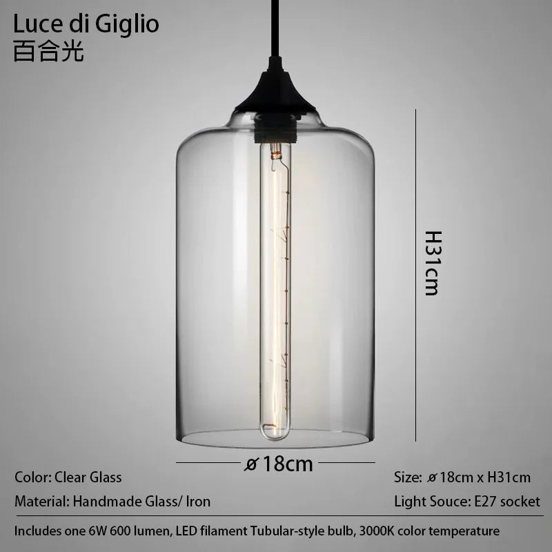 Le pendentif en verre cristal clair, apprécié des designers d'intérieur, se distingue par son cadre cylindrique élégant et sa finition artisanale unique. Les lampes suspendues sont équipées d’ampoules Edison à filament LED de style vintage, disponibles avec des finitions métalliques mates pour une intégration harmonieuse dans tout décor.