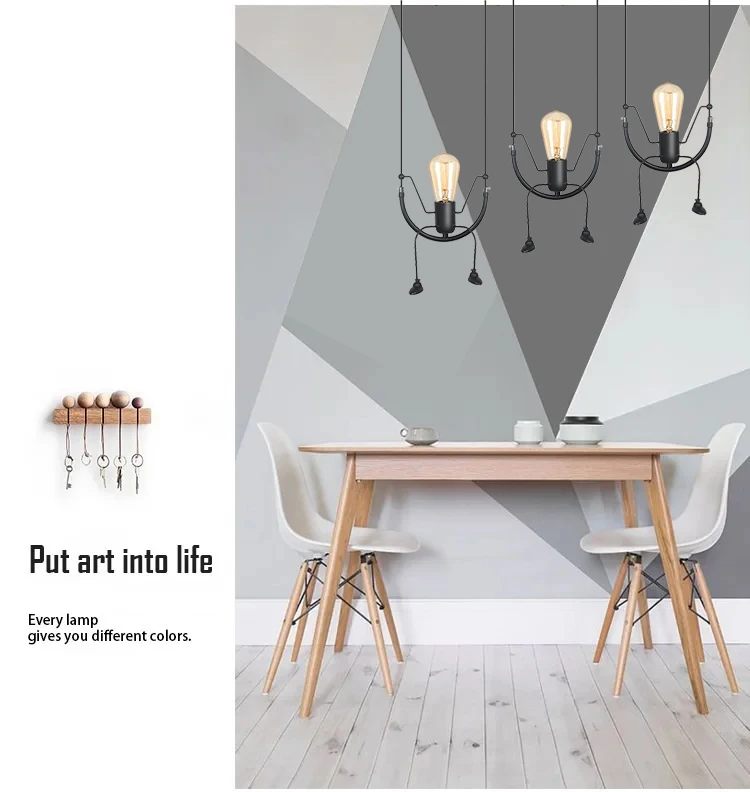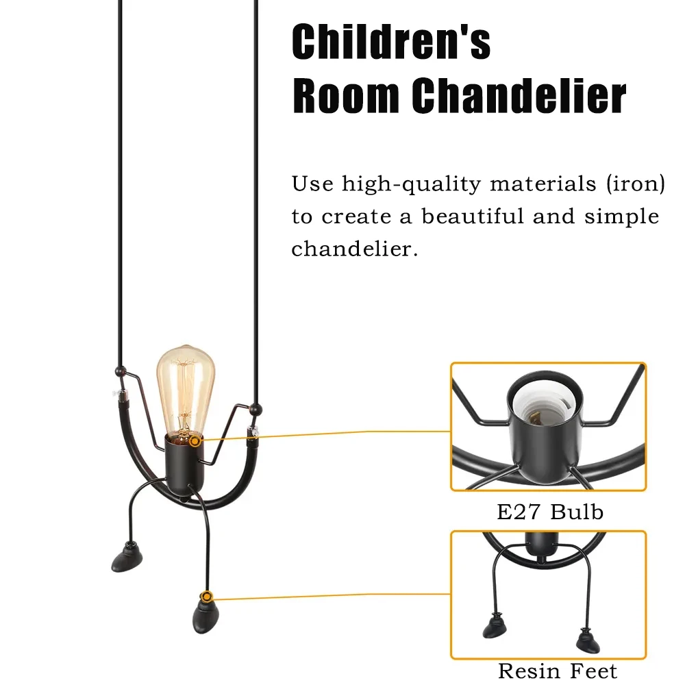 Sa finition noire mate et son alliance de matériaux robustes tels que le fer et la résine de haute qualité garantissent une durabilité optimale tout en offrant un rendu esthétique soigné. Ce lustre est idéal pour les chambres, notamment celles des enfants, ainsi que pour tout espace nécessitant un éclairage à la fois fonctionnel et décoratif, dans un style moderne affirmé.